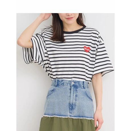 胸元に施されたハートワッペンがキュートなアクセントになるTシャツ