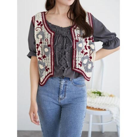 ふわふわとしたデイジーモチーフが可愛らしいクロシェ編みベスト