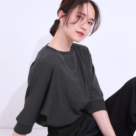 ゆったりとしたシルエットが心地よいドルマントップス。