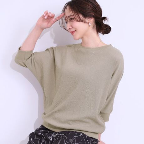 ゆったりとしたシルエットが心地よいドルマントップス。