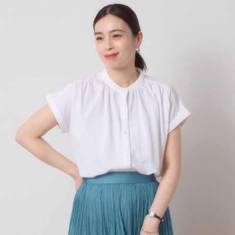 【洗濯機OK/洗濯後しわになりにくい】カットサッカー前開きプルオーバー