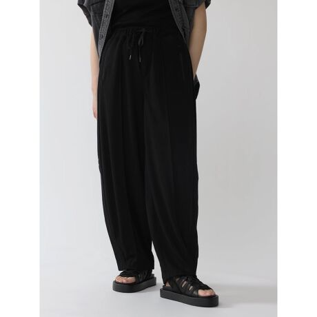 フロントにはセンタープレス、サイドには異素材でラインを加えることでゆったりシルエットの中に、どこかすっきりとした印象をプラスします。
