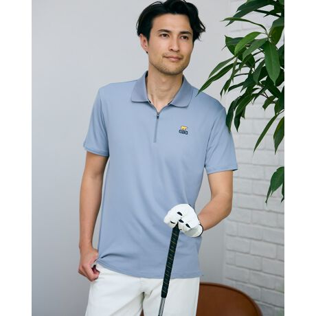 接触冷感性に優れたポロシャツです。表面はポリエステルメッシュ、裏面にナイロンを入れた冷感素材を使用しています。是非”ヒンヤリ感”を体感してください!ネックはフルZIP仕様にしているので、スポーティな表情に仕上げました。
