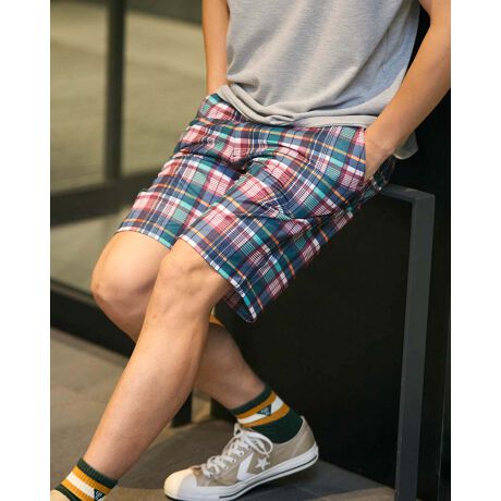トラッドなチェック柄をプリントしたショーツです。穴が開いた特殊な加工を施した機能素材を使用しています。風を通し、通気性抜群!夏にうれしい接触冷感機能もついた万能素材です。