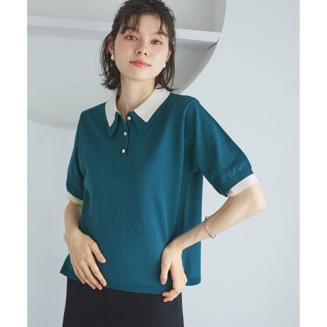 ・襟付きの5分袖ポロニット。