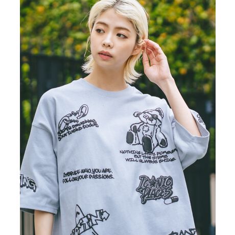 BIGシルエットで。立体感のある発泡プリントにて総柄風にプリントしたトレンド感のあるアイテムです。