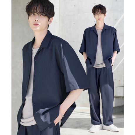 機能性オープンカラーシャツと天竺タンクトップ、立体感のあるタック入りワイドパンツの計3点がセットになった、今季大注目のアイテム。シャツとパンツの生地には、暑い季節に嬉しい接触冷感機能付きの防シワ生地を使用しました。シワがつきにくいためアイロン不要で気軽に着用でき、さっと羽織ればひんやりと気持ち良い、機能性に長けた夏用セットアップです。このワンセットでコーディネートが完成する魅力さに加え、トレンドを抑えた抜け感のあるデザインを採用しているため、本アイテムのみで簡単に今っぽいスタイルが叶います。また、セットでの着用はもちろん、それぞれ単品使いでもしっかりと機能する高いデザイン性で、コストパフォーマンスも抜群のアイテムとなっています。