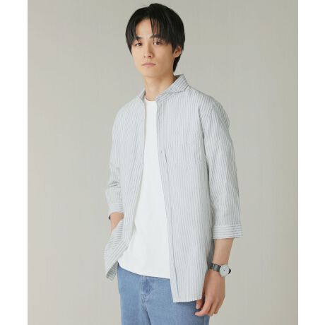綿麻ホリゾンタルカラー7分袖シャツ
