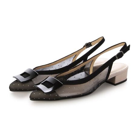 ラメのチュールがキラキラ涼しげな印象のバックベルトパンプス。