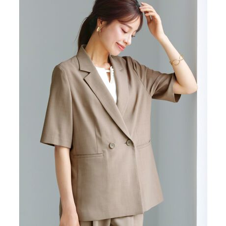 洗濯機OK・接触冷感【 ドライタッチ♪サマージャケット 】クリスピーメランジ・半袖ダブルテーラードジャケット(725271)