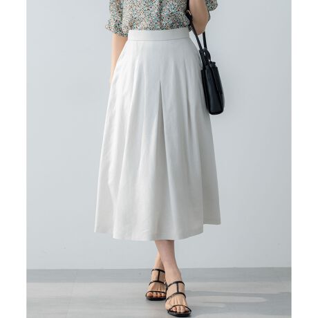 ■デザイン・タック使いの程よい分量感がクラシカルで上品なAラインシルエットのスカート。・広がり過ぎないフレアは、腰回りをすっきりと見せながらきちんと感も◎・後ウエストはゴム仕様で着脱も簡単。