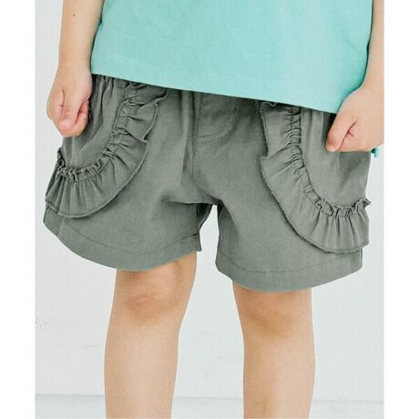 大きなポケットとフリルがおしゃれで可愛いです。綺麗なベージュで使いやすそうです。