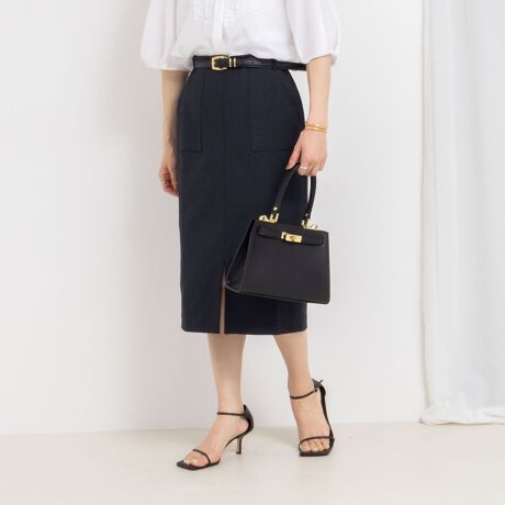 ・暑い時期にぴったりなドライタッチ素材のポケット付きタイトスカート