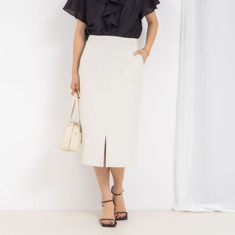 ・暑い時期にぴったりなドライタッチ素材のポケット付きタイトスカート
