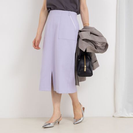 ・暑い時期にぴったりなドライタッチ素材のポケット付きタイトスカート