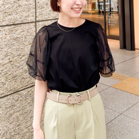 ・カットソーのスムースと布帛のチュールを組み合わせたカットソー