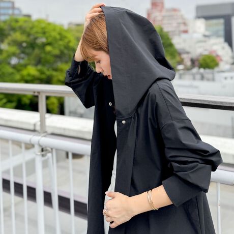 ・ゆったりとしたシルエットと大きめのフードが大人の優雅さを演出