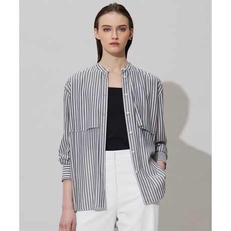 ■デザインキュプラ100%の柔らかく軽やかな印象のストライプシャツです。春から夏のお出かけにもぴったりで、一枚着はもちろん羽織としても便利な一枚です。