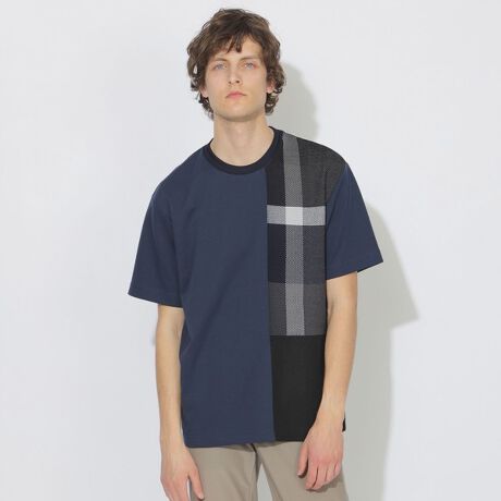 [型番:51P94504__]【アイコニックなチェック柄のニットをドッキングしたデザインTシャツ】フロントにニットで編み立てたクレストブリッジチェック柄をドッキングしたTシャツ。ニットならではの凹凸感により、存在感のあるデザインに仕上がっています。夏のスタイリングの主役になる一着です。素材には3層構造からなるダンボールニットを使用。程良い厚みとハリ感があり、シルエットをきれいに演出します。※展開店舗については、予告なく変更になる場合がございます。