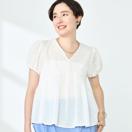 ・透け感のある素材に毛足のあるジャガードを施したブラウス