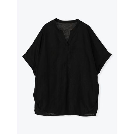 ・顔まわりをすっきり見せる、スキッパー襟×バンドカラー。
