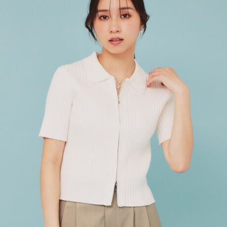 ・トレンドの衿付きに特徴的なダブルジップ仕様により、一枚着風やフルオープンでカーディガンのように着たり、部分的に開けて肌見せなど、着こなしのアレンジが楽しめる一着です。