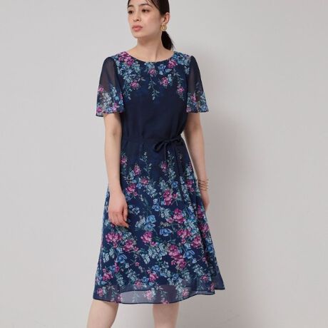 フレアスリーブがフェミニンな印象のパネル柄ワンピース。