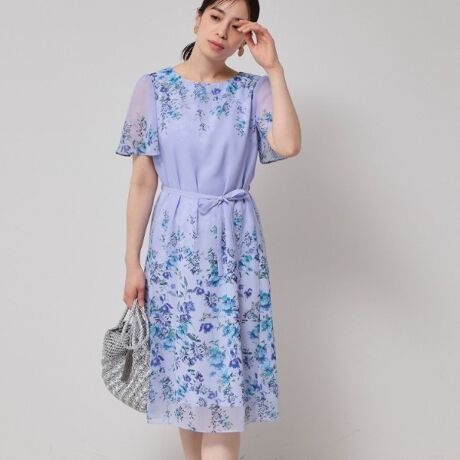 フレアスリーブがフェミニンな印象のパネル柄ワンピース。