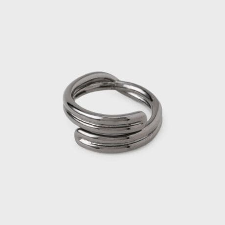 細い丸線が複雑に重なっているようなデザインのファッションリング。