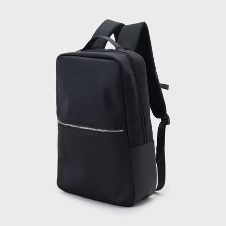 微光沢のある上品な見ためのナイロンを使用したスクエアタイプのバックパック。