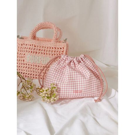 配色のロゴプリントがポイントになったインナー巾着。マチ付きで容量がたっぷりと入る巾着なので、バッグのインナーとしてはもちろん、パッキング用ポーチとしてもおすすめ。RWGB252504とセットでの使用ができるよう、FURFURらしいバラエティ豊富な6色展開でご用意しました。