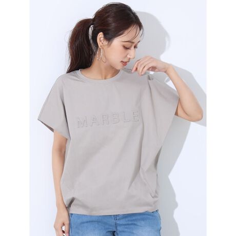 エンボス加工で表現された立体的なロゴが目を引くフレンチスリーブTシャツ。