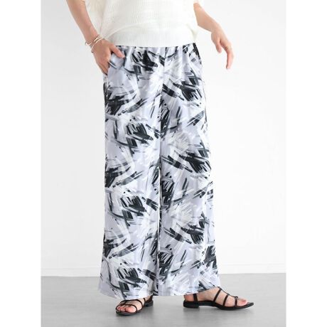 筆タッチのアートプリントが存在感を放つワイドパンツ。