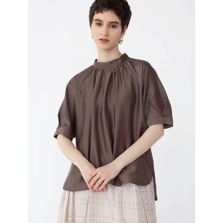 レーヨン混ギャザーネックブラウス