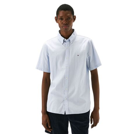 TOMMY HILFIGERらしい、アメリカントラッドを感じさせるボタンダウンシャツ。表面に凹凸のある涼やかなシアサッカー生地を使って、暖かい季節に最適のアイテムへと仕上げました。左胸には控えめなフラッグロゴをワンポイントでプラス。一枚着はもちろん、Tシャツなどの羽織りにもなる万能なアイテムです。