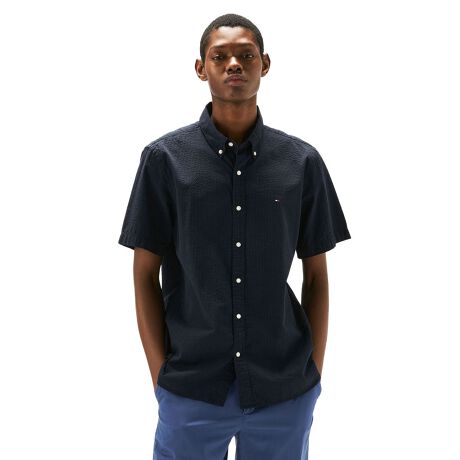 TOMMY HILFIGERらしい、アメリカントラッドを感じさせるボタンダウンシャツ。表面に凹凸のある涼やかなシアサッカー生地を使って、暖かい季節に最適のアイテムへと仕上げました。左胸には控えめなフラッグロゴをワンポイントでプラス。一枚着はもちろん、Tシャツなどの羽織りにもなる万能なアイテムです。