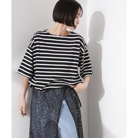 大人カジュアルの定番アイテムとして重宝するボーダTシャツ。ややワイドシルエットのドロップショルダーで、両脇がスリット開きになったデザインが今っぽい抜け感のある一着。綺麗めなワイドパンツやボリュームスカートと合わせた落ち着いた雰囲気のカジュアルスタイルがおすすめです。
