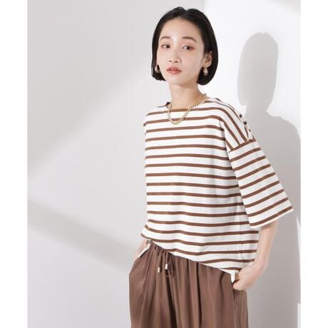 大人カジュアルの定番アイテムとして重宝するボーダTシャツ。ややワイドシルエットのドロップショルダーで、両脇がスリット開きになったデザインが今っぽい抜け感のある一着。綺麗めなワイドパンツやボリュームスカートと合わせた落ち着いた雰囲気のカジュアルスタイルがおすすめです。