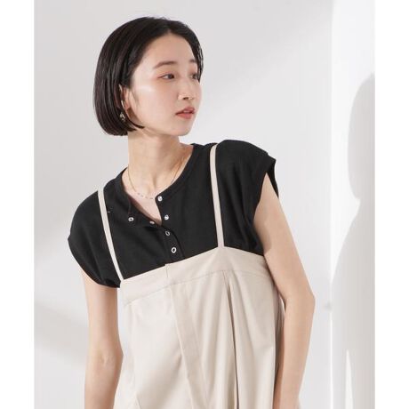 リラックス感ある大人なカジュアルスタイルが完成するワッフル生地のカットトップス。リングボタンがポイントになるヘンリーネックで、ボタンの開閉で抜け感や着こなしの変化を楽しめるアイテムです。