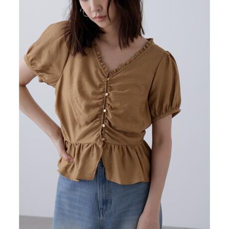 コンパクトなシルエットでボトムスとのバランスが取りやすく、コーデの主役にピッタリのブラウス。ドット柄は粗野な麻調合繊生地を使用しています。無地(ブラウン、ライトブルー)はナチュラルワッシャーが入っており、合繊なのでONでもOFFでも活躍してくれる生地感です。身頃はボディに沿いながらギャザーリングでお腹まわりに響かず着用いただけます。OFFスタイルには今期らしくデニムスカートやデニムパンツを合わせたり、ONスタイルではナロースカート合わせがおすすめです。※モデルの着用画像の場合、光の当たり具合により、実際の色味と異なって見えることがございます。色味は、商品単体の画像をご参照ください。