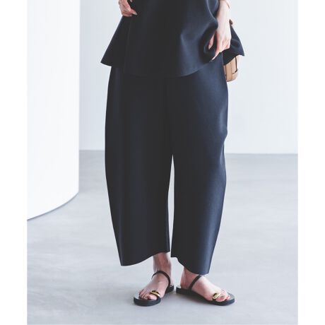 外側にカーブを描くボリューム感のあるシルエットが特徴的な、装いにモードなインパクトを与えるニットパンツ。