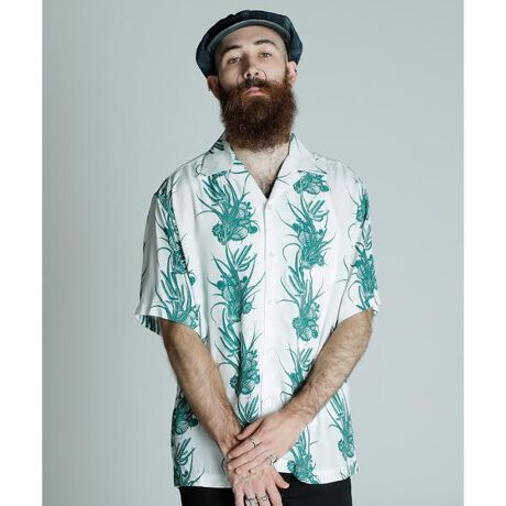 毎年人気のレーヨン100%のオープンカラーシャツ。