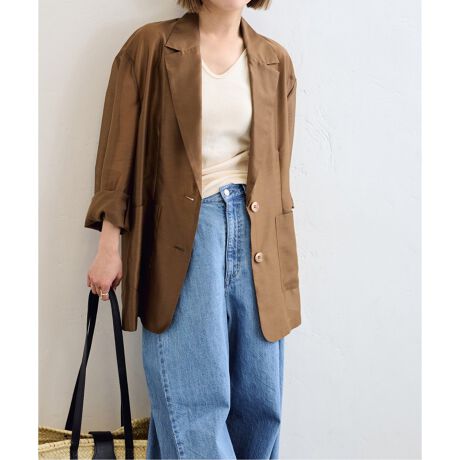 シアー素材のジャケットは、シャツのような感覚で着られる一枚。