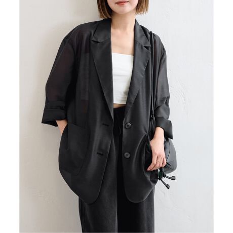 シアー素材のジャケットは、シャツのような感覚で着られる一枚。