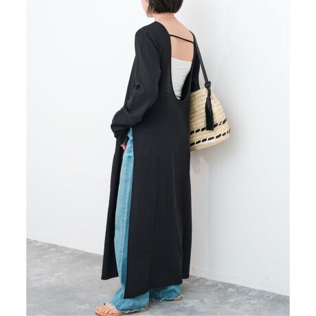 背中をUの字に広く明けて抜け感たっぷりのデザインに。