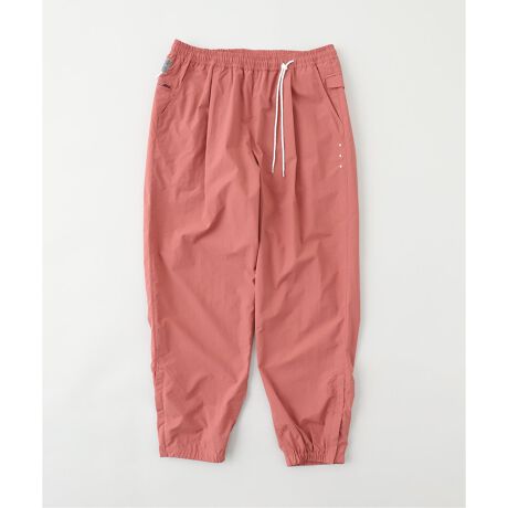 裾は靴を履いたまま脱ぎ着できるファスナースリット仕様で、アウトドアにも最適です。ウエストのコードはあえて左端に寄せ、ベルトを垂らしたような見え方になっています。すっきりとしたストレートシルエットで見た目の美しさも兼ね備える一着です。
