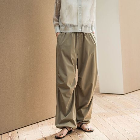 洒落見えシルエットと機能性が大好評の撥水ボトムから、パラシュートパンツが登場。