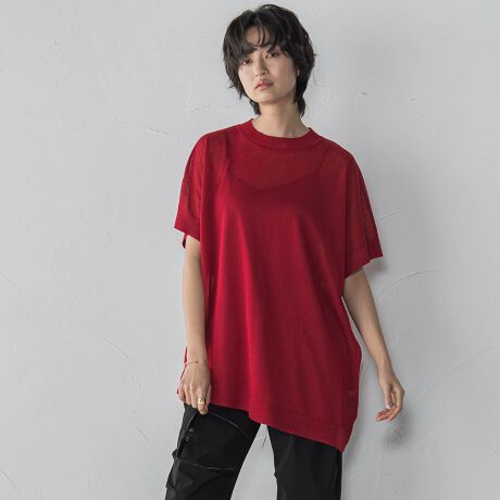 アシンメトリーなヘムラインとゆるっとしたフォルムがほんのりモードな、サマーニット・プルオーバー。