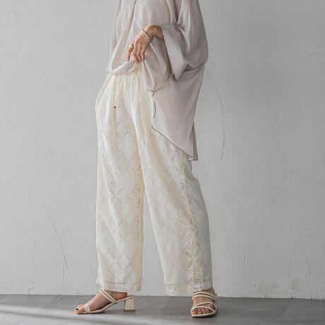 【WEB限定】パッチワーク風レースリラックスワイドパンツ≪手洗い可能≫