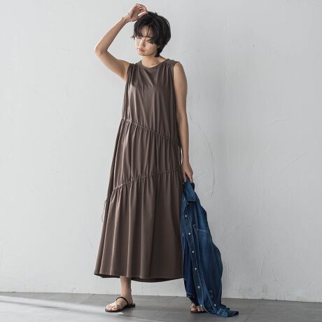 ドロストノースリーブカットワンピース≪手洗い可能≫
